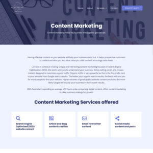 Your website is a 24/7 advertisement for your business. It is important to ensure that it conveys your business branding and key messages through quality content marketing. Having a website designed to maximise search engine optimisation will help:
